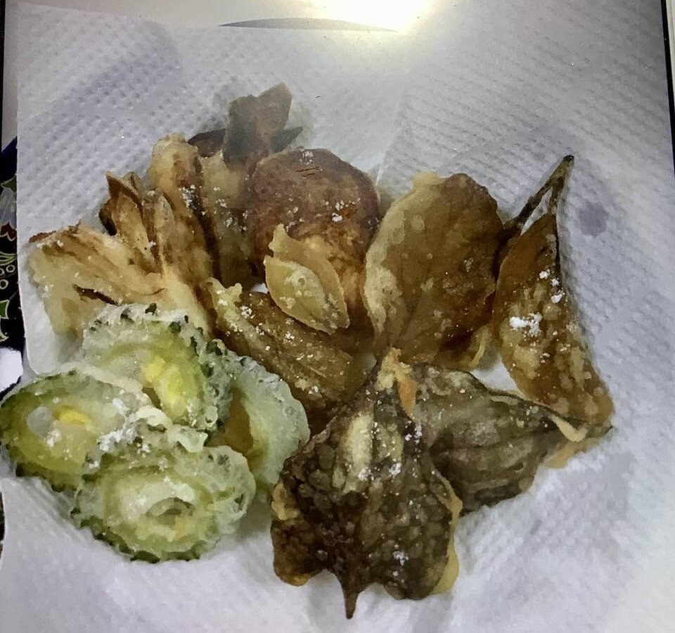 今日は、、この時期タカチヤン先生の要望で毎年作って居る天ぷら きっと皆さんびっくりするかなあ まずはごぼうと玉ねぎのかき揚げ、ゴーヤジャガイモここまでは普通 ゴーヤの横右にあるのが柿の葉! 黒くみえるのは、何とドクダミの葉!! グルテンフリーの天ぷら粉で揚げました ドクダミの葉、臭くて食べるもんと違うと思っ...