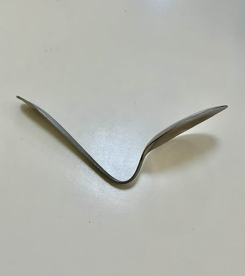 宮西さんのスプーン曲げの投稿見てて そう言えば 昔私も出来てたなあと思い出し 試しにやって見たら あれ、まだ出来ちゃった、 96歳で亡くなった母も ユリゲーラのスプーン曲げテレビで見てたら 出来ちまったよと言って母 遺伝かなあ、笑い