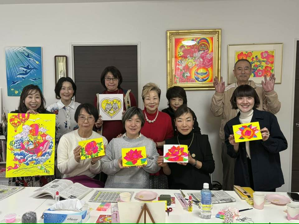 つぶやき 15Feb2026 にぎやかな教室 今日は塩絵教室でした久しぶりに、にぎやかな教室でした 新しい方が2名 そしてフィリピンから日本に来ている、ライアンちゃん 日本で働いたお金を 親に仕送りをしている 親孝行娘 日本語がまだはなせなく通訳が必要ですが 陽子ちゃんの 何とかかたことで会話なっているのかなっていないのか分からないけど 意思疎通は出来ているようです笑い 皆さんに元気をもらってたのしかったです、ウフフの1日でした Post Share Hatena Pocket Pin it つぶやき 前祝いの光 まなちゃんの取材 関連記事一覧 描き始め 富士山 ムゲンダイ♾️アート 作品 まなちゃんの取材 ムゲンダイ♾️アート ヤマト古代教室 2024.5