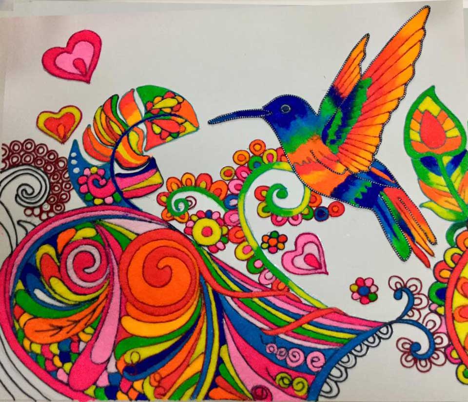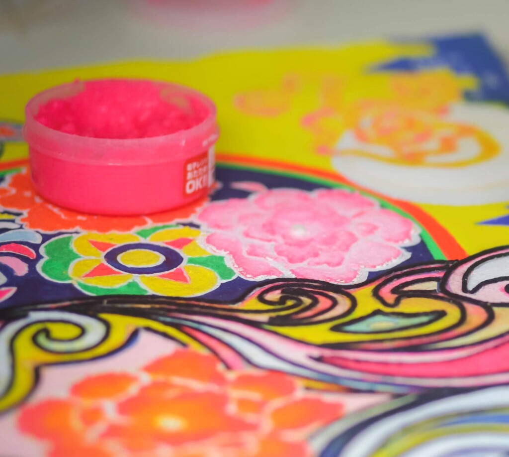 塩絵で使う塩絵の具の明るい色は、血流を変えるだけでなく脳への刺激も与えてくれます。