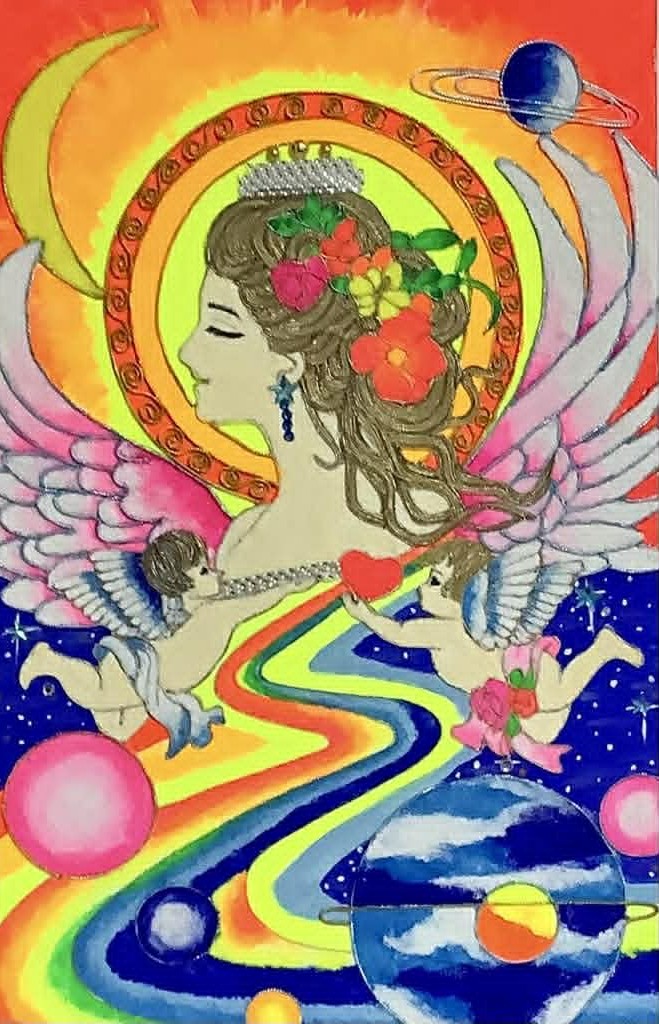 天使が導きの女神様の所に案内してくれる様を描きました